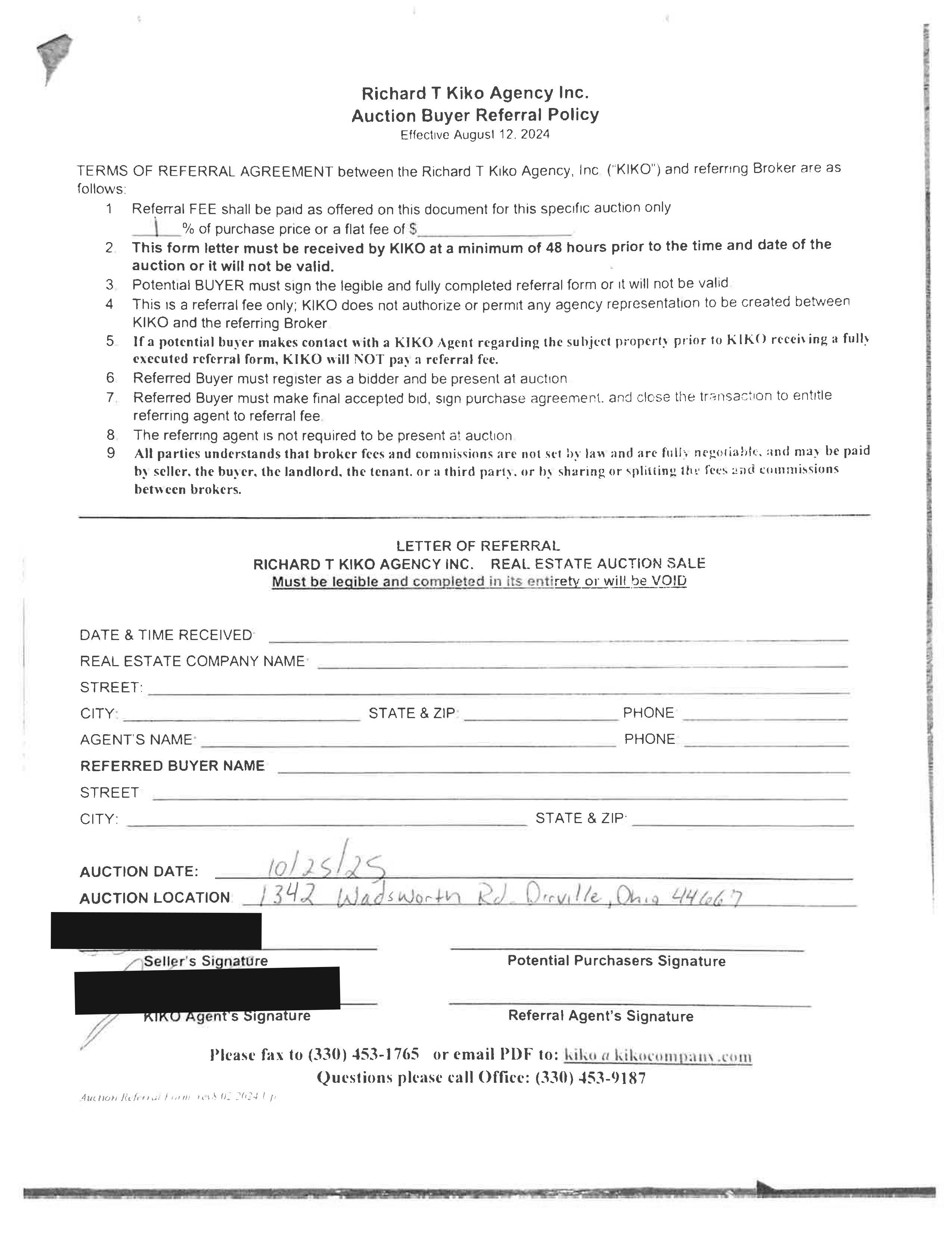 Directions: From US RT 30 take SR-57 (Wadsworth Rd.) north to auction location. Watch for KIKO signs.