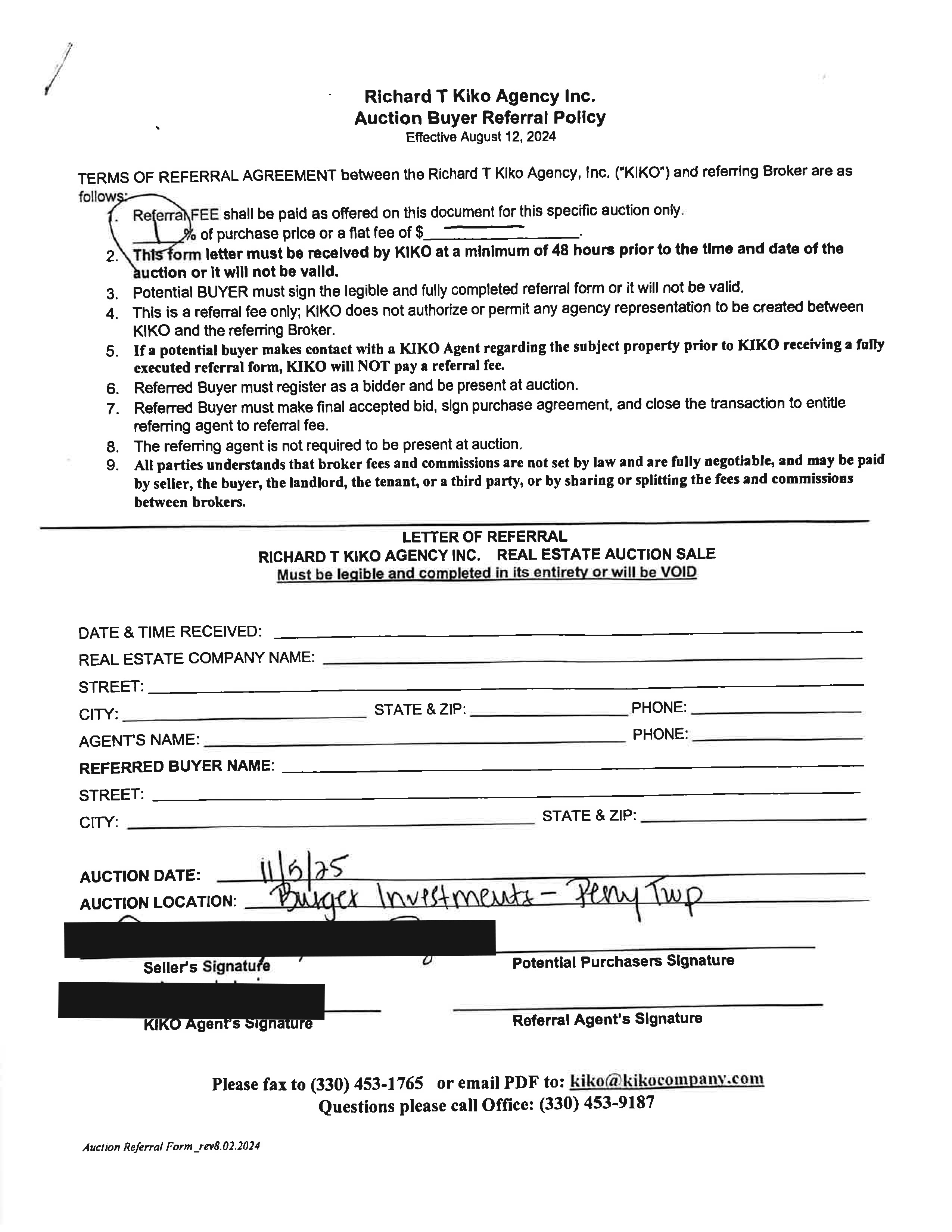 10% down auction day, balance due at closing. A 10% buyer’s premium will be added to the highest bid to establish the purchase price. Any desired inspections must be made prior to bidding. All information contained herein was derived from sources believed to be correct. Information is believed to be accurate but not guaranteed. Property to be offered as a Multi Par auction and sold whichever way it brings the most.