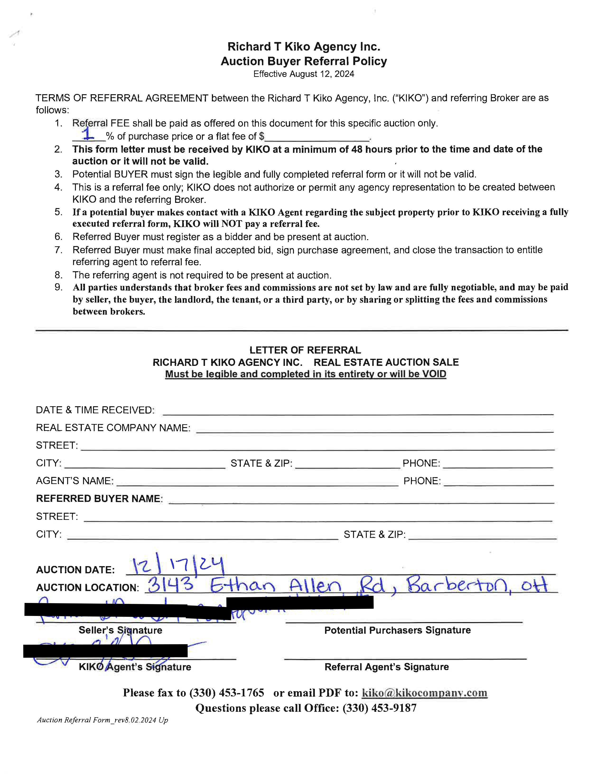 10% down auction day, balance due at closing. A 10% buyer’s premium will be added to the highest bid to establish the purchase price. Any desired inspections must be made prior to bidding. All information contained herein was derived from sources believed to be correct. Information is believed to be accurate but not guaranteed.