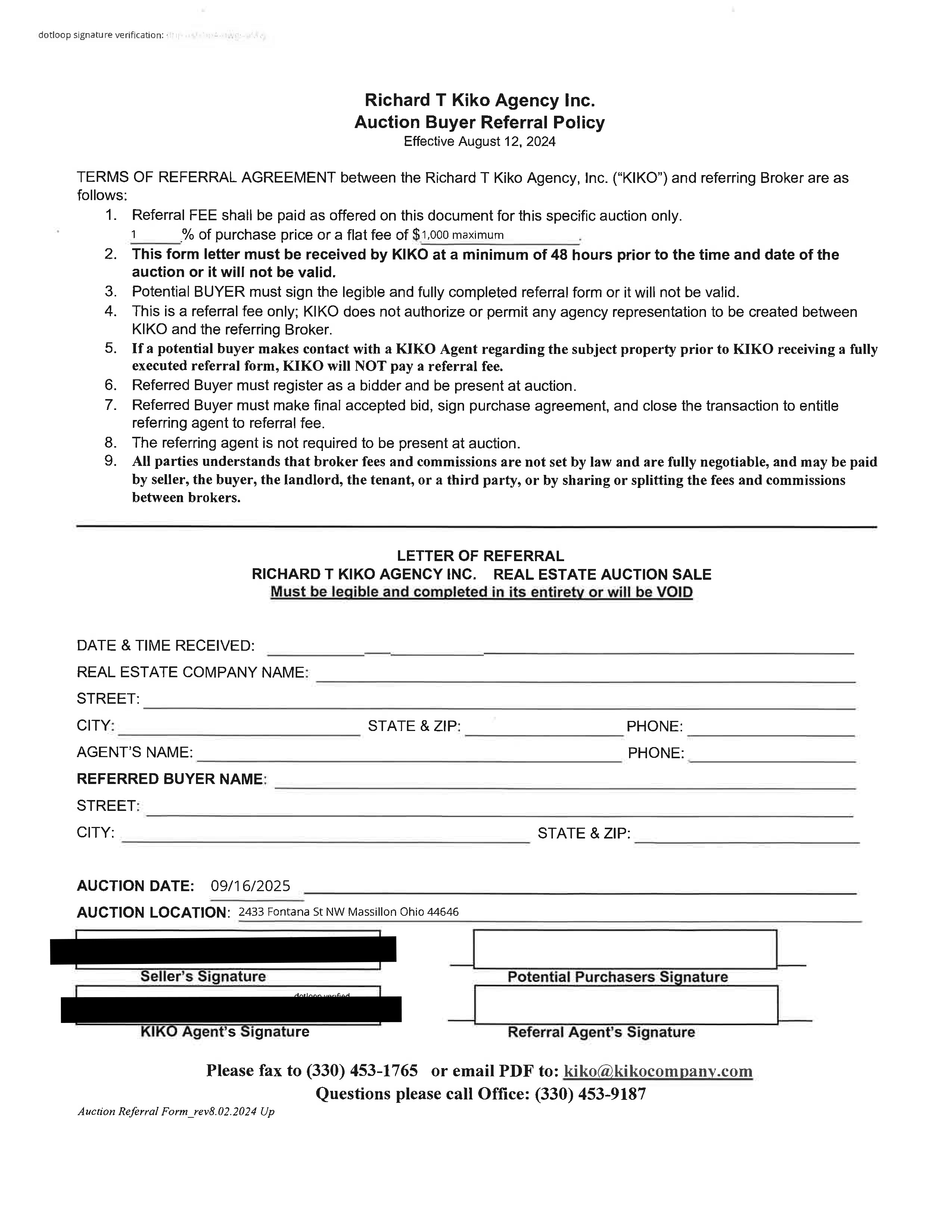 10% down auction day, balance due at closing. A 10% buyer’s premium will be added to the highest bid to establish the purchase price. Any desired inspections must be made prior to bidding. All information contained herein was derived from sources believed to be correct. Information is believed to be accurate but not guaranteed.